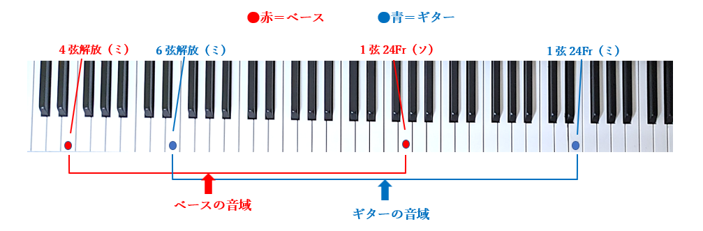 ギターとベースの1番の違いは、音域にあります。