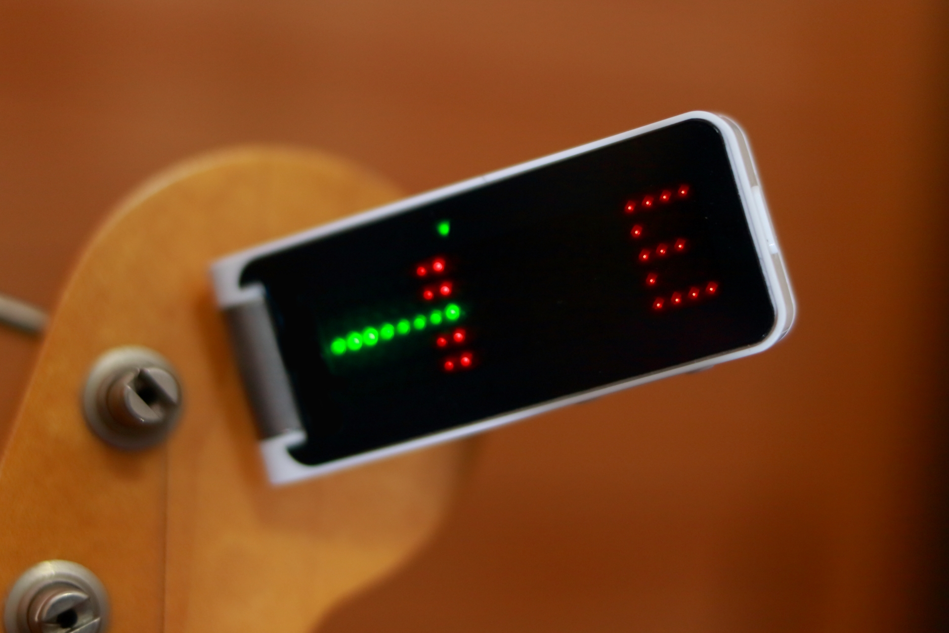 チューナーには写真のようにネックに取り付けるタイプコードで接続するタイプ鳴らした音を拾うタイプがあります。ネックに付けたまま使用できるチューナーは、すぐに確認して調整できる上に、周りの音にも影響せずにチューニングできるのでお勧めです。